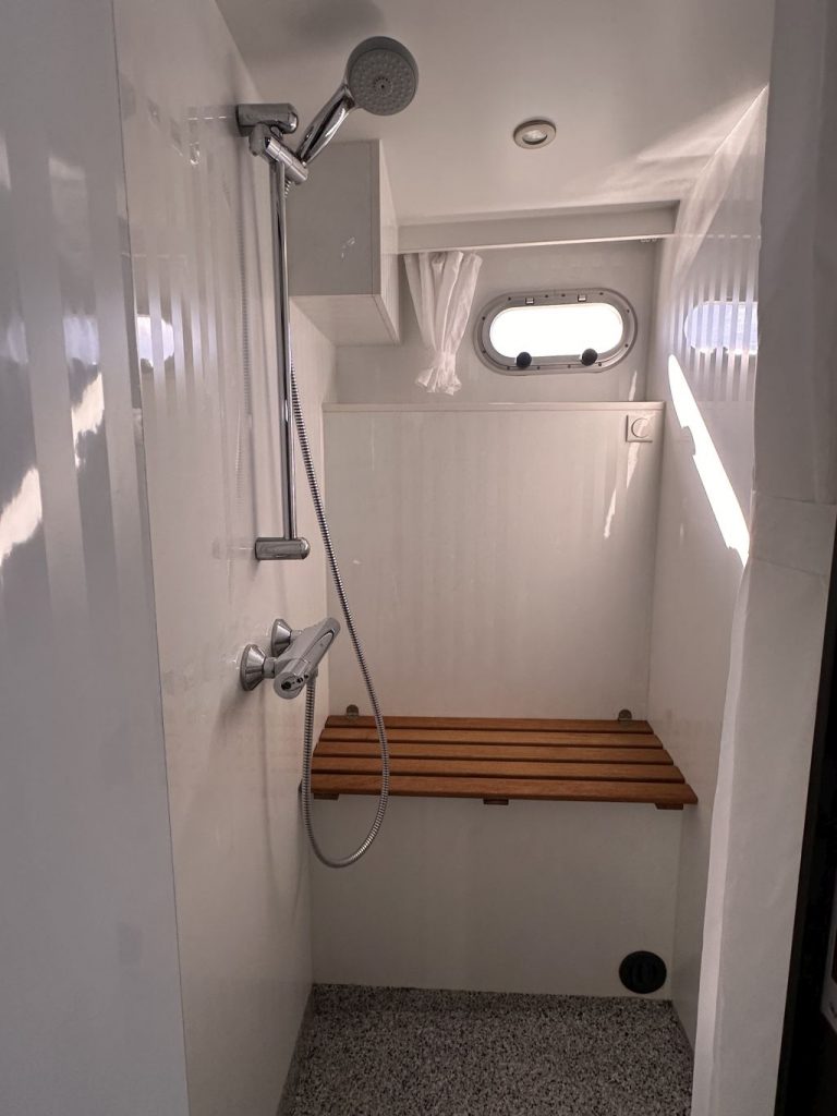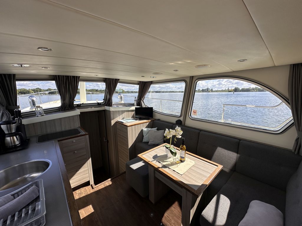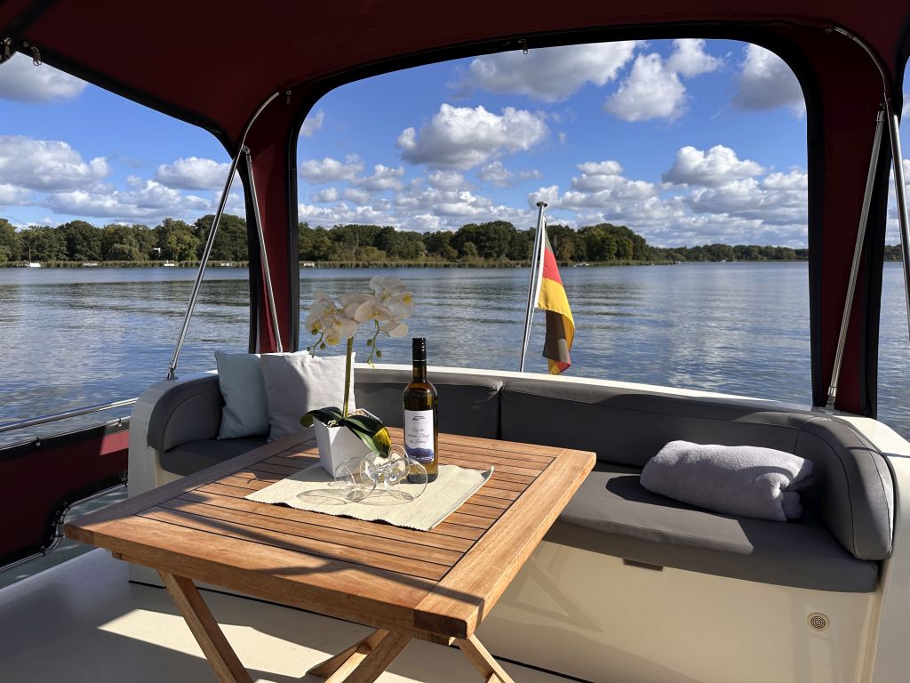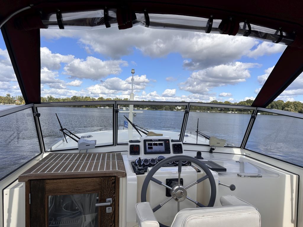 großes Fahrstandsverdeck komplett verschließ- und über Salon mit beheizbar