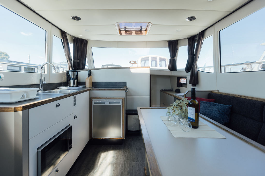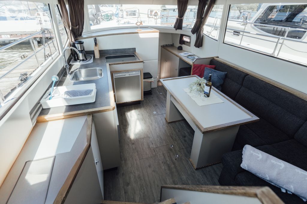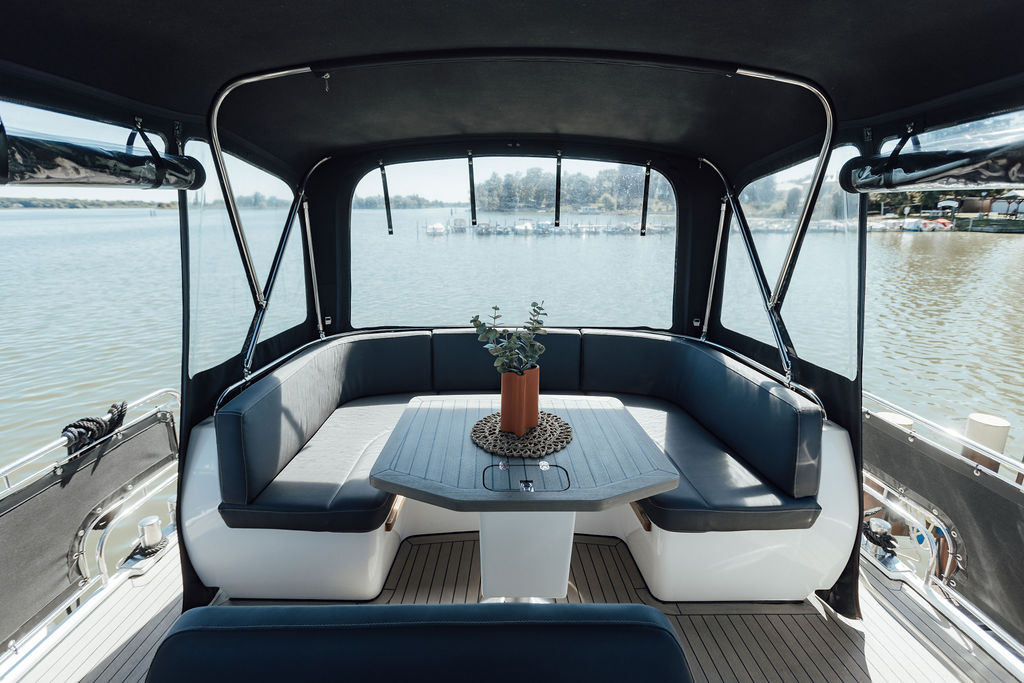 großes Fahrstandsverdeck komplett verschließ- und über Salon beheizbar